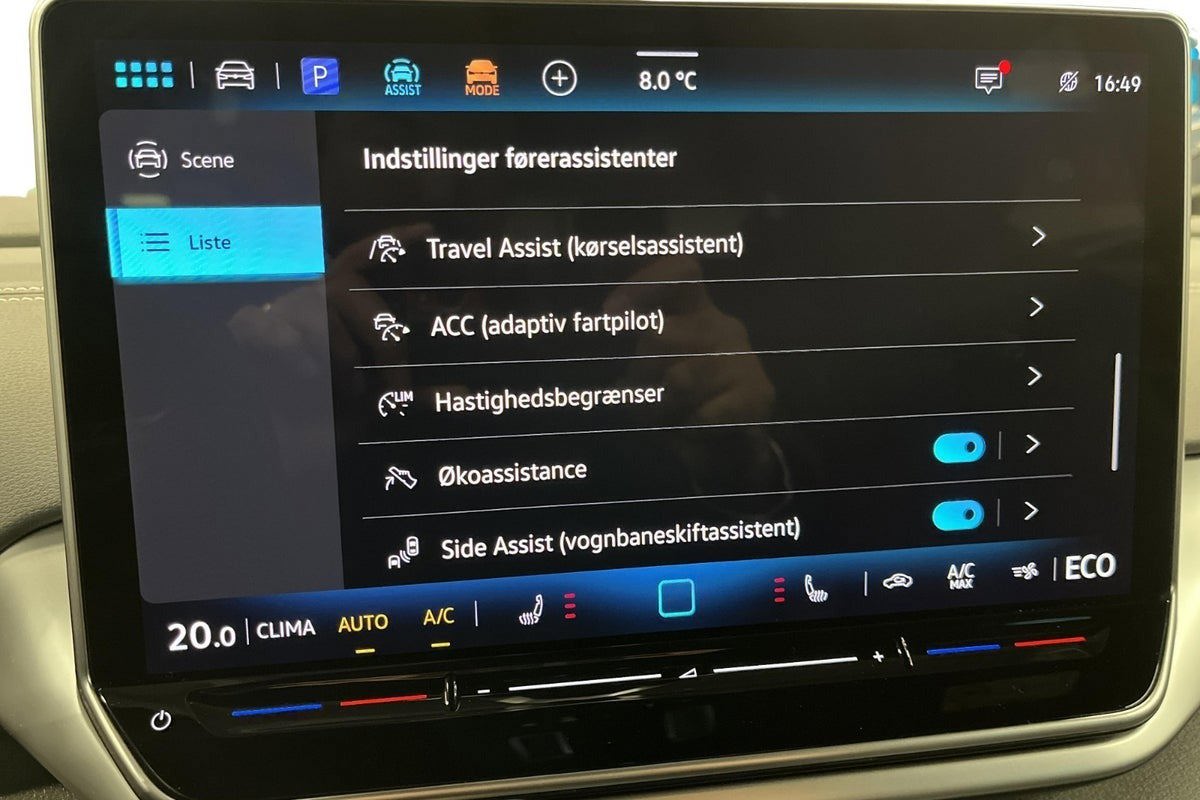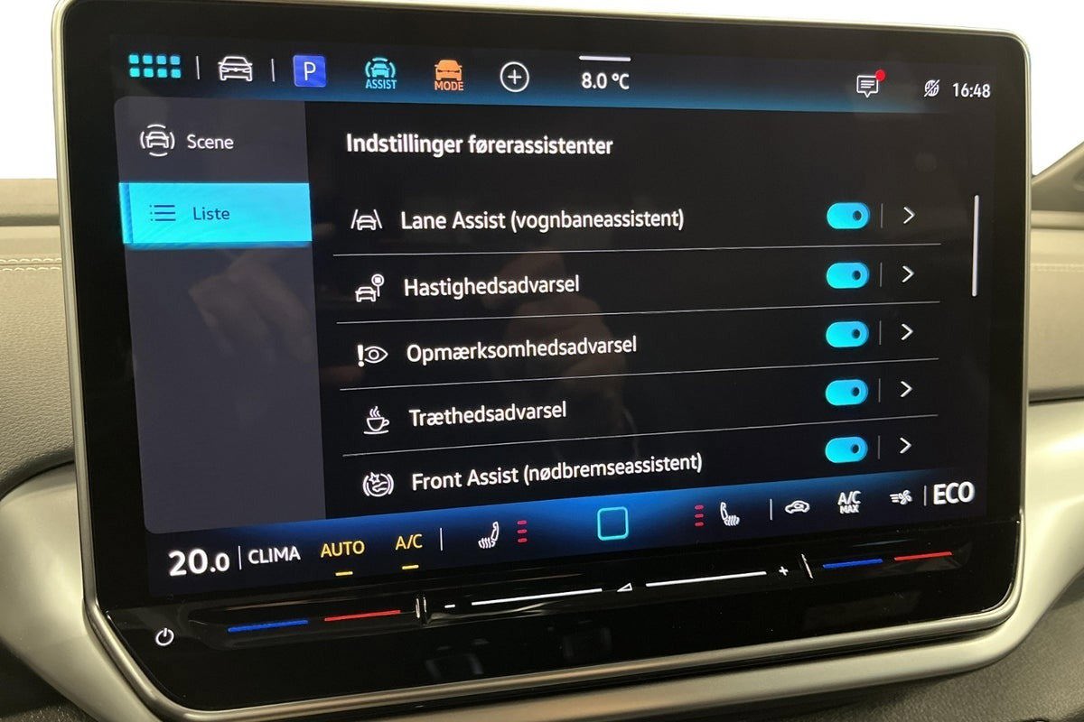 kørecomputer, bagagerumsdækken, multifunktionsrat, læderrat, dellæderindtræk, alcantaraindtræk, højdejust. forsæder, splitbagsæde, mørk loftbeklædning, ambiente belysning, 20" alufælge, el-klapbare sidespejle m/varme, tågelygter, led kørelys, kurvelys, matrix led forlygter, led baglygter, dynamisk blinklys i bag, tagræling, mørktonede ruder i bag, svingbart træk (elektrisk), områdebelysning, automatgear, varme i rat, aircondition, fuldaut. klima, 2 zone klima, elektrisk kabinevarmer, varmepumpe, fjernb. centrallås, nøglefri adgang, nøglefri tænding, adaptiv fartpilot med kø-assistent, varme i forrude, aut. nedbl. bakspejl, udv. temp. måler, sædevarme, 4x el-ruder, el betjent bagklap, fod betjent bagklap, elektrisk parkeringsbremse, trådløs mobilopladning, automatisk forvarmning af batteri, type-2 ladekabel, dab+ radio, navigation, håndfrit til mobil, musikstreaming via bluetooth, android auto, apple carplay, usb-c tilslutning, alarm, regnsensor, parkeringssensor (bag), parkeringssensor (for), dæktryksmåler, træthedsregistrering, førerovervågning med advarsel, skiltegenkendelse, intelligent hastighedsassistent, isofix, automatisk lys, fjernlysassistent, airbag, vognbaneassistent, antispin, blindvinkelsassistent, automatisk nødbremsesystem, stemmebetjening, auto hold